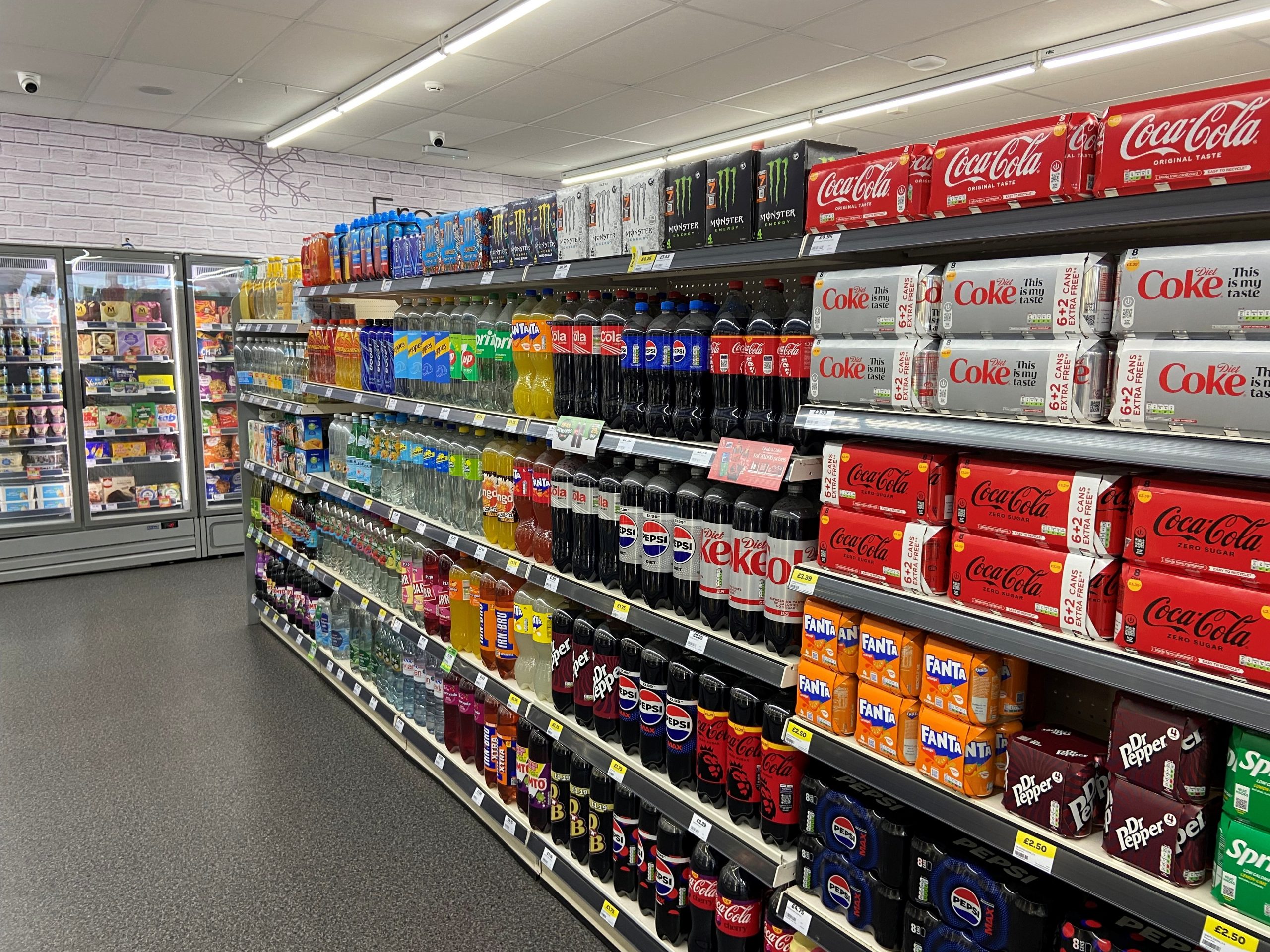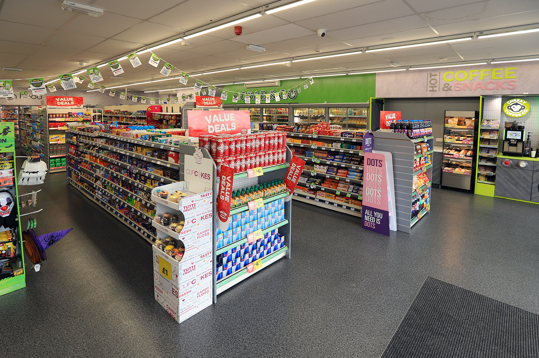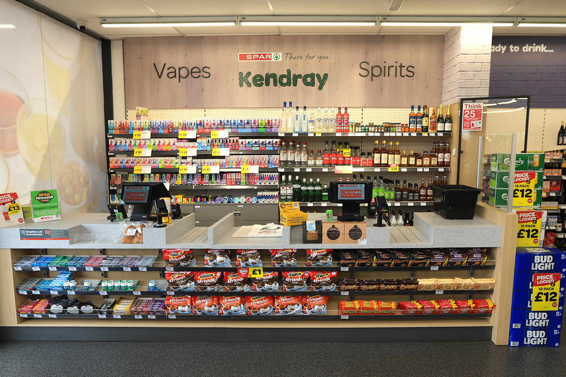 A vape section and spirits range sit behind the till, and the store’s high ceiling, bright LED lighting, and clearly identified category areas ensures that the shopping experience is a positive one.